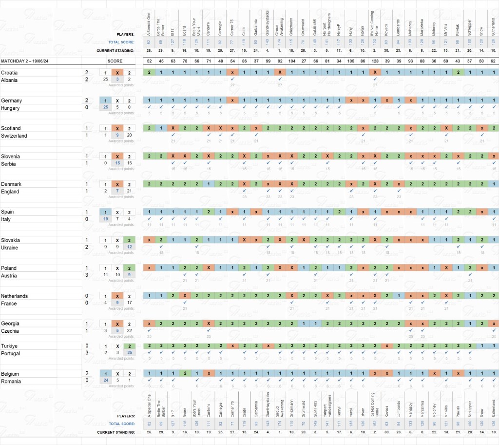 Euro24TippingComp – Matchday 2 – Good Luck!