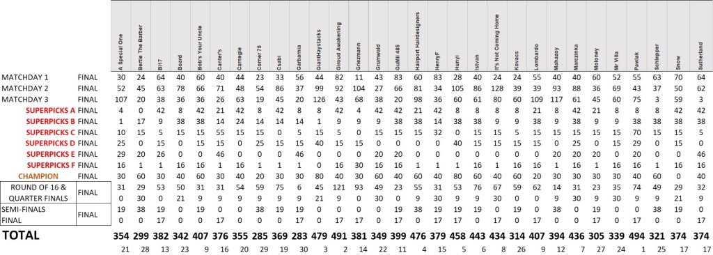 Every 12 games represent a round. Each round’s winner will get a round prize of $80. For the last “Super Picks plus Semis and Final” round the points of the last three games are added to the Super Picks total to have a round winner.